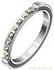 角接触球轴承的钢珠与内外圈接触点的连线与径向成一角度。接触角度一般分为15°、30°、40°,分别用字母C、A、B表示,NSK特别生产接触角度为25°的此类轴承,用A5表示。角接触球轴承主要承受较大单向轴向负荷,接触角度越大,承受负荷能力越大。保持架材料有钢板、黄铜或工程塑胶,成型方式有冲压或车削,视轴承形式或使用条件不同而选用。其它尚有组合角接触球轴承、双列角接触球轴承四点接触球轴承